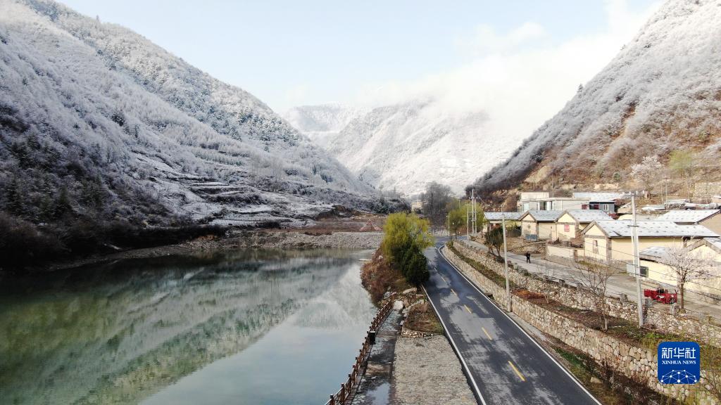 一場春雪過后,位于甘肅省隴南市宕昌縣的官鵝溝森林公園銀裝素裹,山巒之間云霧飄渺,美不勝收。