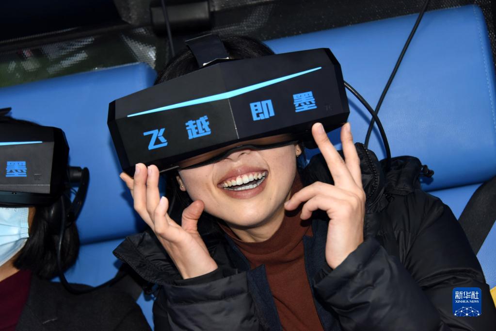 4月6日,參觀者在展會上體驗景區VR互動項目。
