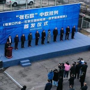 當日,河北省張家口市中歐班列首發儀式在萬全西站舉行。首發班列裝載有汽車配件等商品,將從內蒙古二連浩特口岸出境,駛往莫斯科。這是張家口市開行的首趟中歐班列,開啟了該市與歐洲經貿往來的高效陸路新通道。