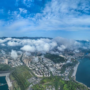 一場春雨過后,長江三峽上空云霧繚繞,如水墨畫卷,美不勝收。