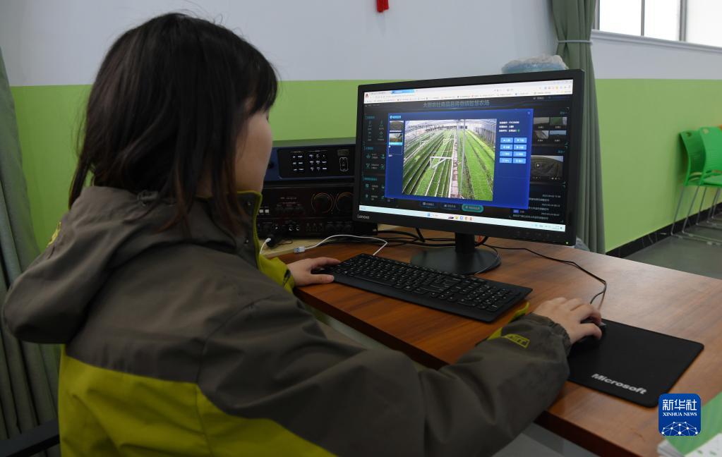 4月6日,在江西省南昌縣蔣巷鎮大田農社,智慧農業平臺工作人員通過系統實時查看育秧大棚情況。