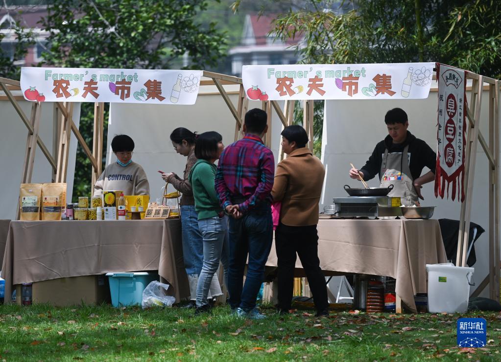 4月7日,匯聚眾多農產品及文創產品的“農夫市集”在新桐鄉小桐洲村香樟公園內開市。