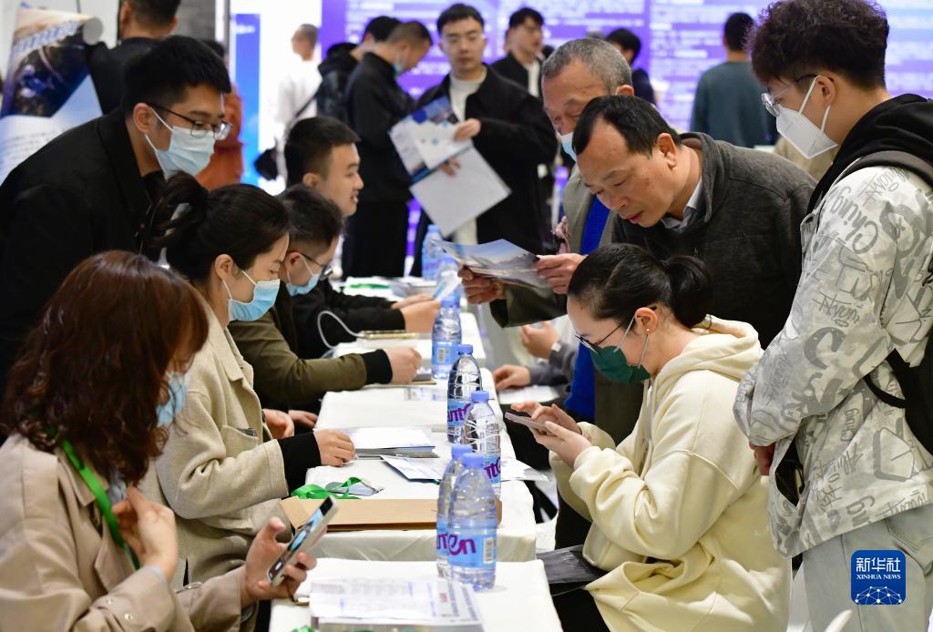 4月7日,高校畢業生在家人陪同下在招聘會現場求職。