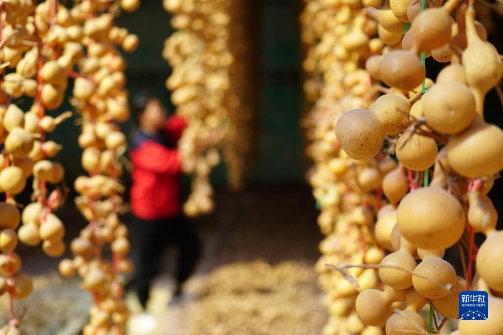 4月7日,邢臺市信都區會寧鎮張爾莊村村民在挑選葫蘆。