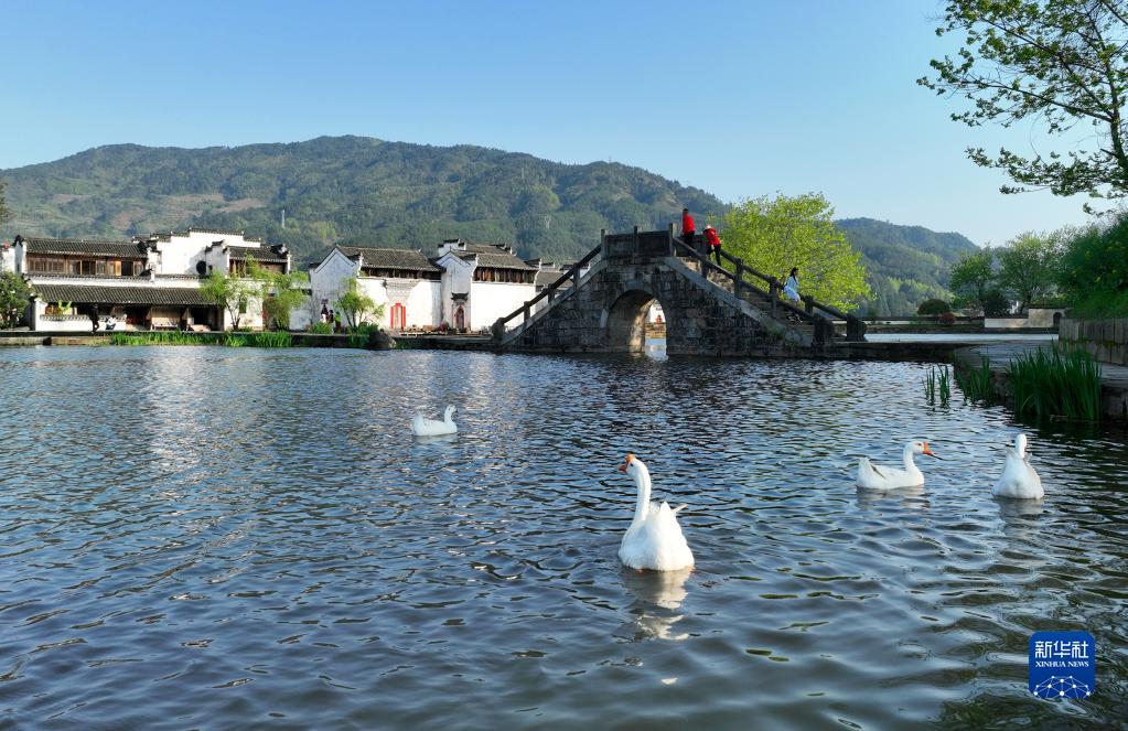 近日,安徽省黃山市迎來晴好天氣,徽州區的徽派古村落迎來眾多踏青賞景的游客,在春日陽光中感受詩情畫意的生態鄉村。