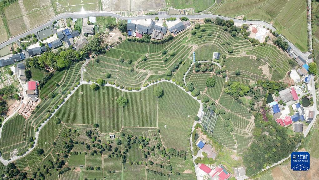 這是4月7日在湖南省長沙市長沙縣金井鎮拍攝的金井茶旅融合產業園(無人機照片)。