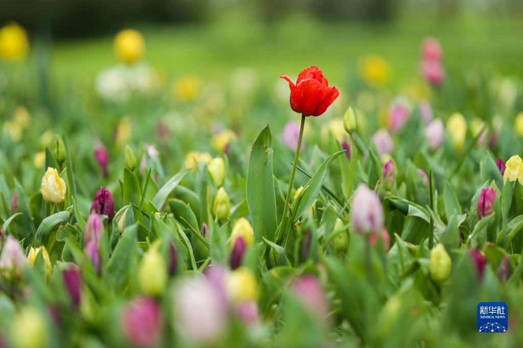 這是4月7日在比利時首都布魯塞爾以西的拜加登城堡園林拍攝的花卉。