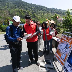 4月8日,諸暨市志愿者在趙家鎮皂溪村發放“掃黃打非”科普知識宣傳冊。