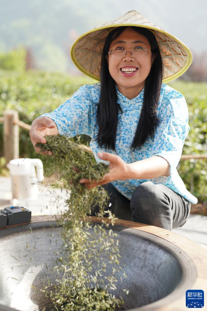 4月6日,游客在安康市紫陽縣向陽鎮一處茶園體驗炒茶。