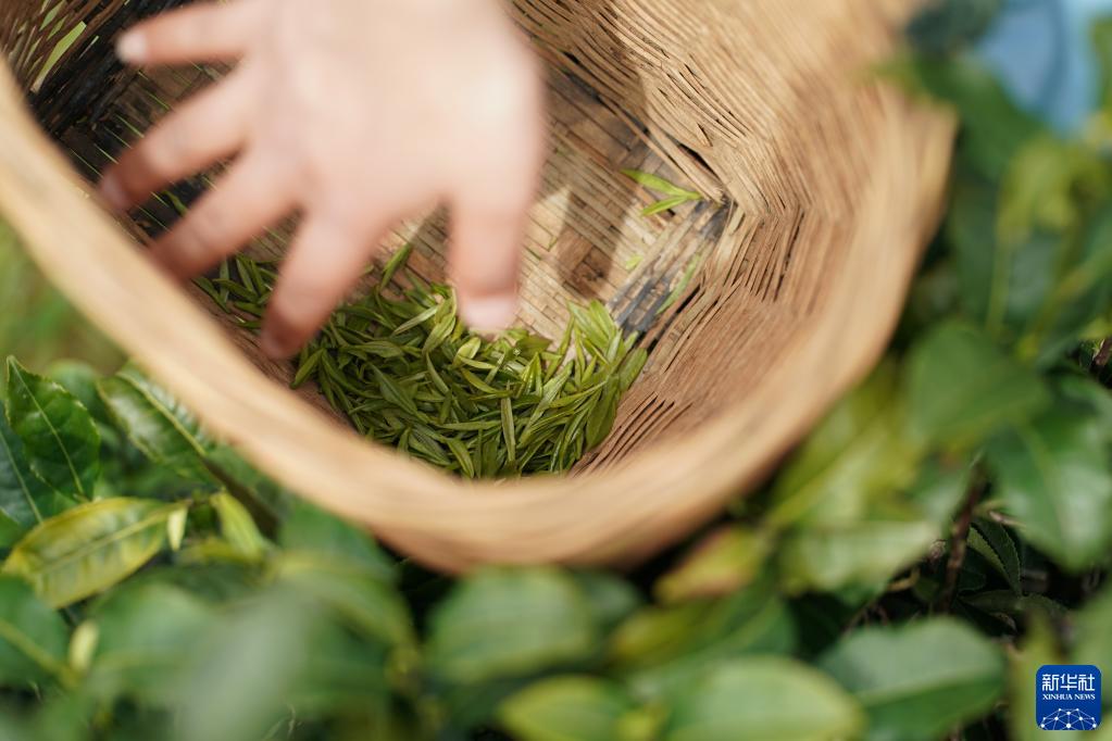 3月29日,安康市紫陽縣職業教育中心茶葉專業的學生在該縣洄水鎮的茶園采茶。