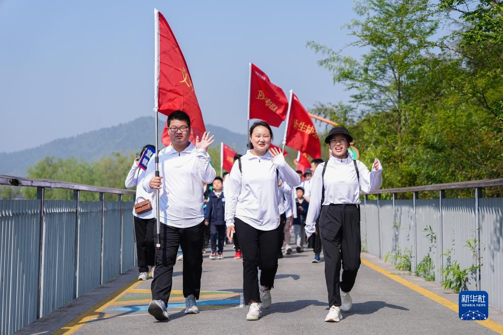 4月8日,市民在青山湖綠道參加第35個愛國衛生月毅行活動。