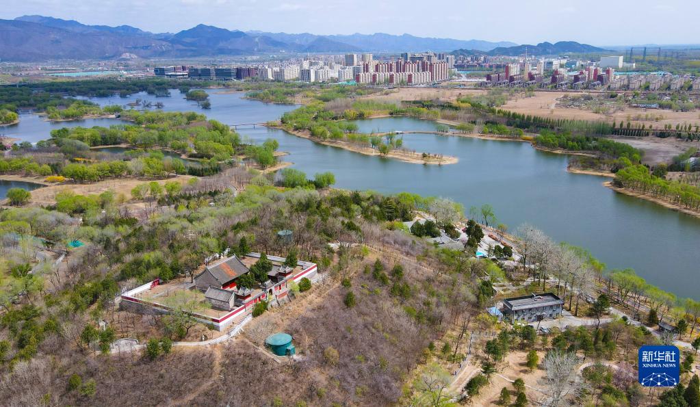 這是4月6日在北京市昌平區拍攝的大運河源頭遺址公園(無人機照片)。