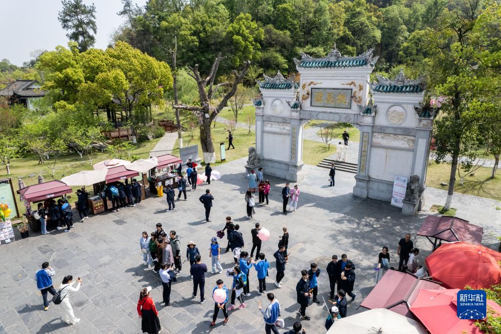 4月8日,不少游客在常德桃花源風景名勝區游玩、觀光(無人機照片)。
