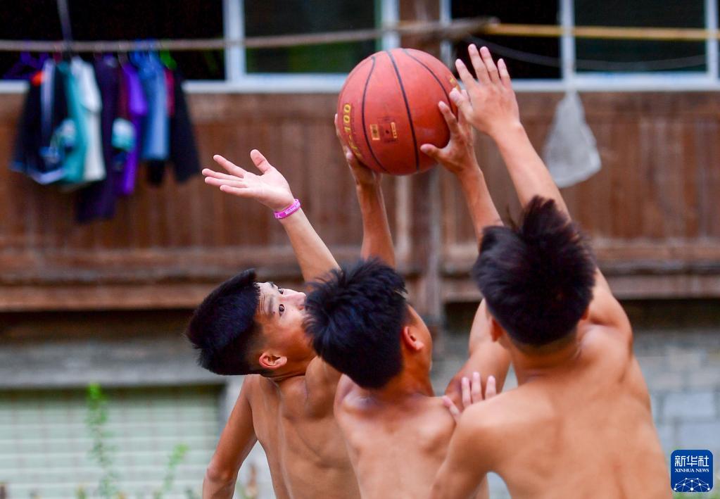 在大苗山深處的桂黔烏英苗寨,籃球運動深受當地人們喜愛。新華社記者 黃孝邦 攝