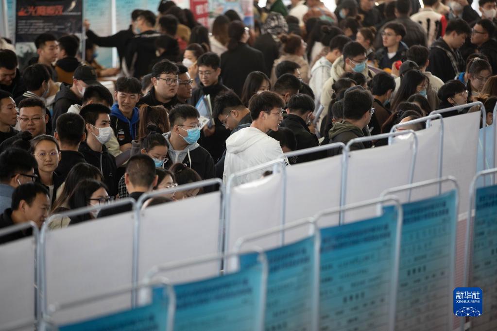 4月8日,在黑龍江工商學院松北校區體育館,求職者參加黑龍江省民辦高校就業協作體2023屆聯合招聘會。