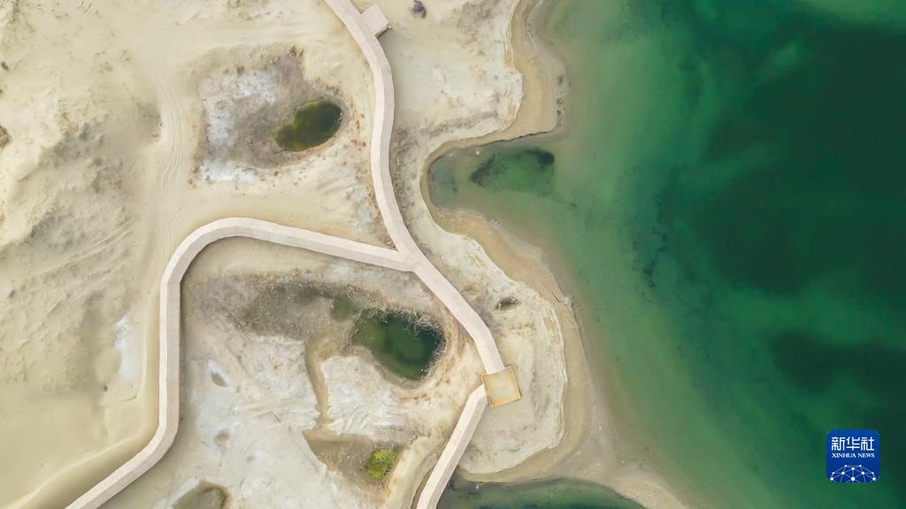 3月31日在羅布人村寨景區拍攝的神女湖(無人機照片)。