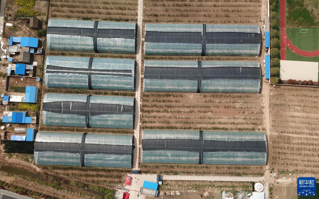 4月8日拍攝的一處位于山東省成武縣南魯集鎮的大棚櫻桃種植園(無人機照片)。