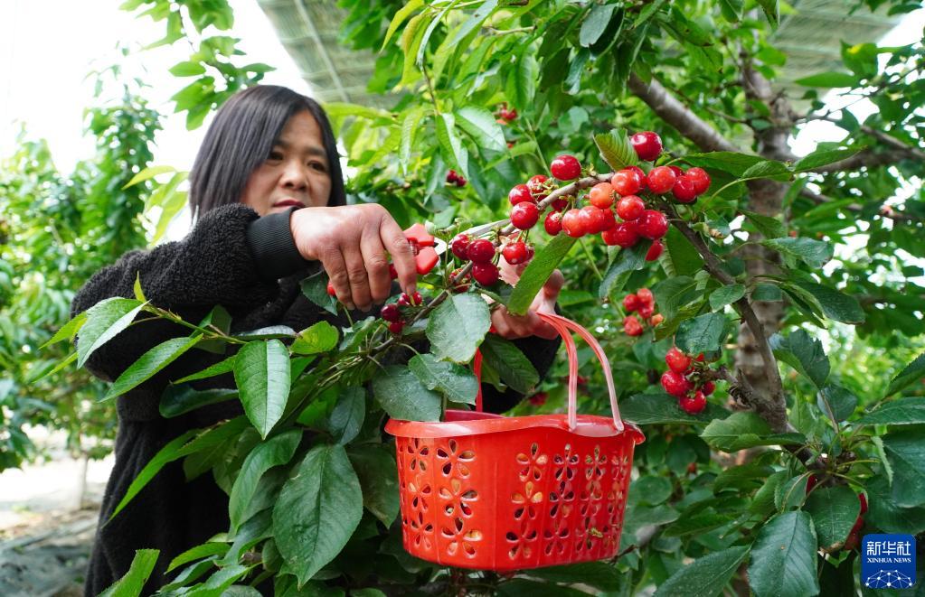 近日,在山東省菏澤市成武縣,大棚櫻桃陸續成熟,櫻桃種植戶忙著采摘收獲供應市場,也吸引不少游客前來游覽、采摘。近年來,當地根據市場需求,采取“村黨支部領辦合作社”的模式發展大棚櫻桃產業,帶動村民就業增收。