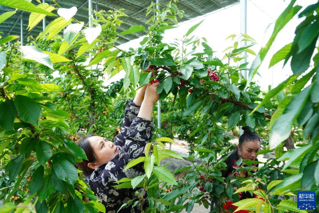 近日,在山東省菏澤市成武縣,大棚櫻桃陸續成熟,櫻桃種植戶忙著采摘收獲供應市場,也吸引不少游客前來游覽、采摘。近年來,當地根據市場需求,采取“村黨支部領辦合作社”的模式發展大棚櫻桃產業,帶動村民就業增收。