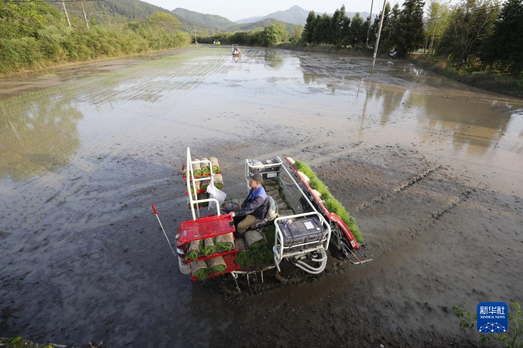 4月7日,插秧機在浦城縣石陂鎮開展再生稻插秧作業。