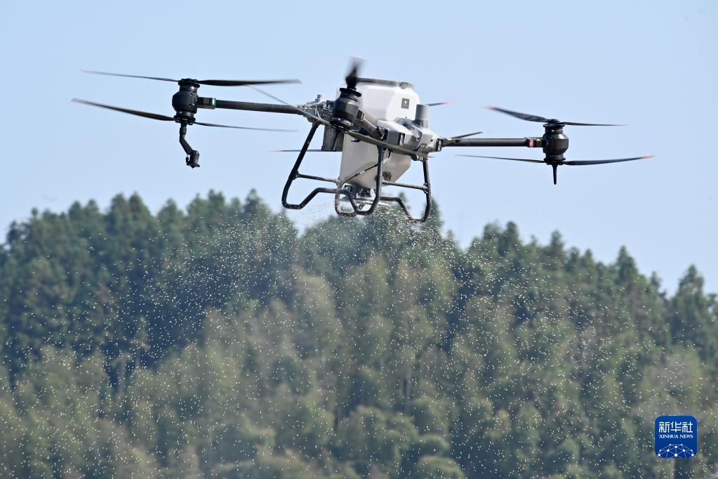 4月8日,無人機在浦城縣石陂鎮高標準農田上空施肥。