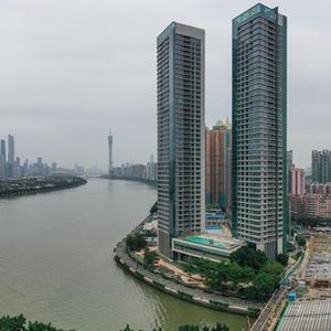 廣州地鐵10號線濱江東路站周邊被珠江和高樓環繞(4月8日攝,無人機照片)。