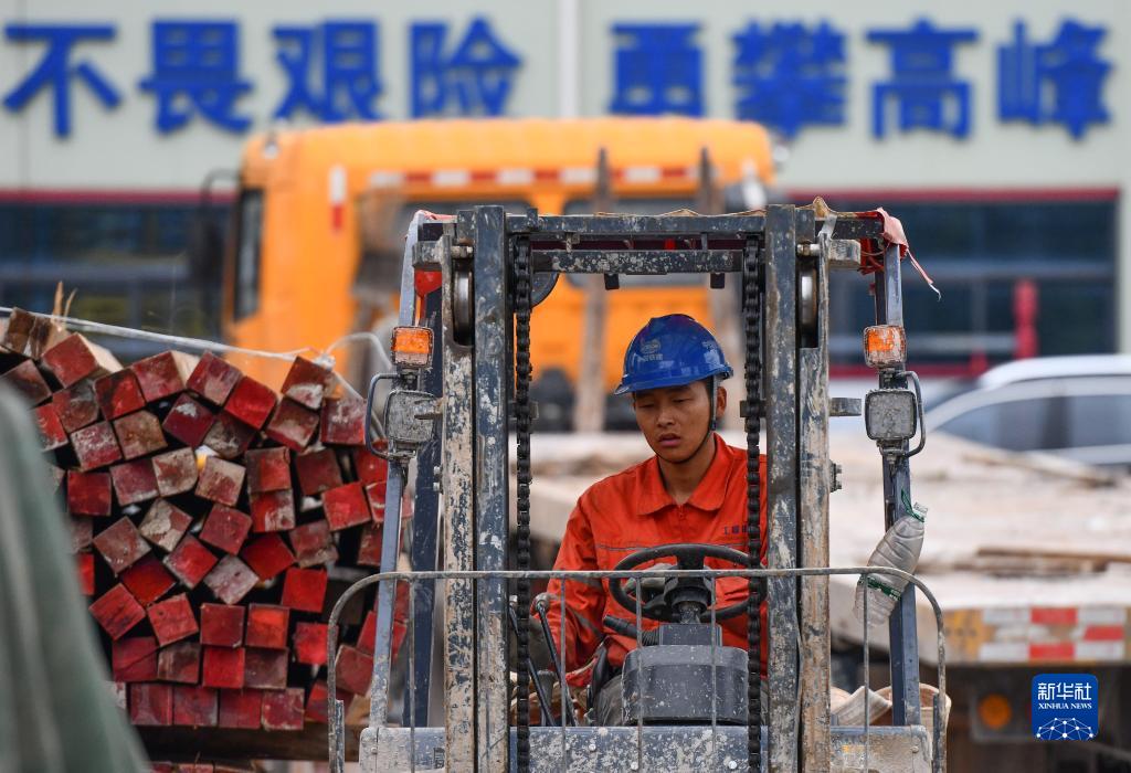 4月8日,施工人員在廣州地鐵10號線濱江東路站清理工地。