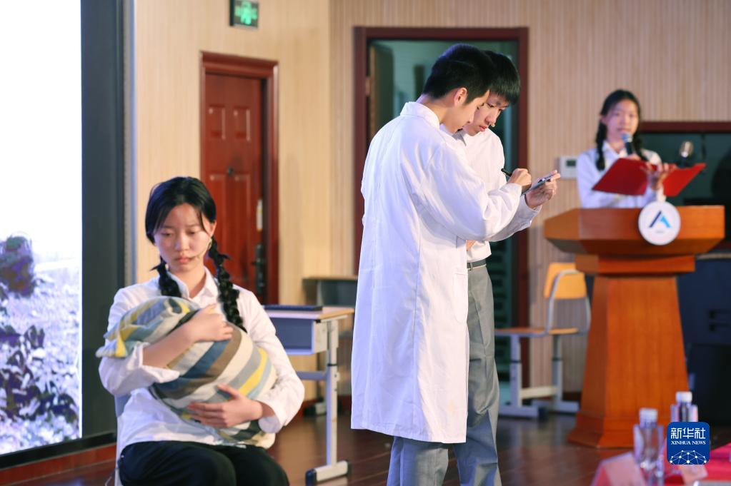 4月7日,人大附中分校的學生表演展現科學家精神的舞臺劇《核潛艇專家黃旭華》。