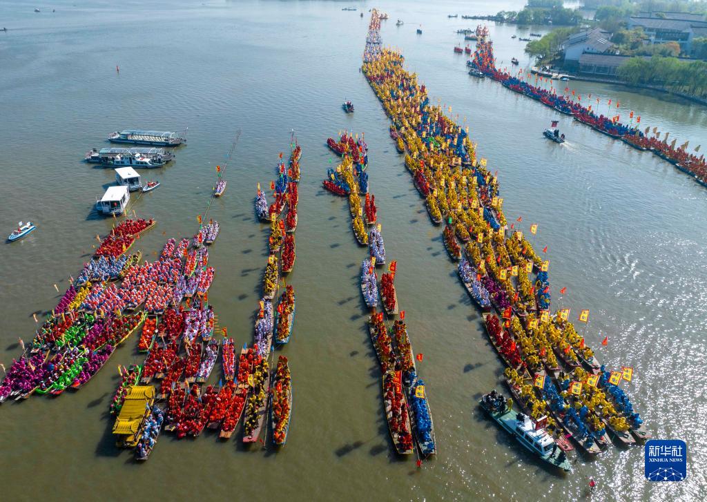當日,2023年泰州姜堰溱潼會船節在江蘇省泰州市姜堰區溱湖國家濕地公園開幕,數百條船只和萬余名會船選手云集溱湖,演繹歷久彌新的民俗畫卷。
