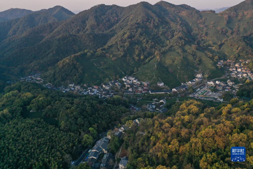 浙江省杭州市西湖風景名勝區龍井村(2023年3月15日攝,無人機照片)。