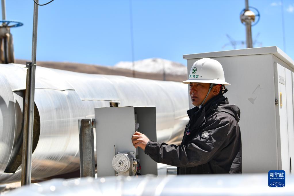 羊易地熱電站工作人員在檢查設備狀況(4月6日攝)。