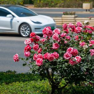 近日,云南省昆明市廣福路、日新中路等道路綠化帶內種植的樹狀月季進入盛花期,為春城增添一道獨特的風景。
