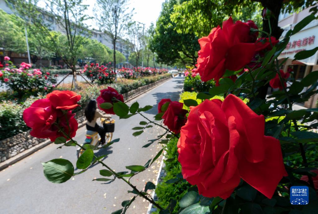 近日,云南省昆明市廣福路、日新中路等道路綠化帶內種植的樹狀月季進入盛花期,為春城增添一道獨特的風景。