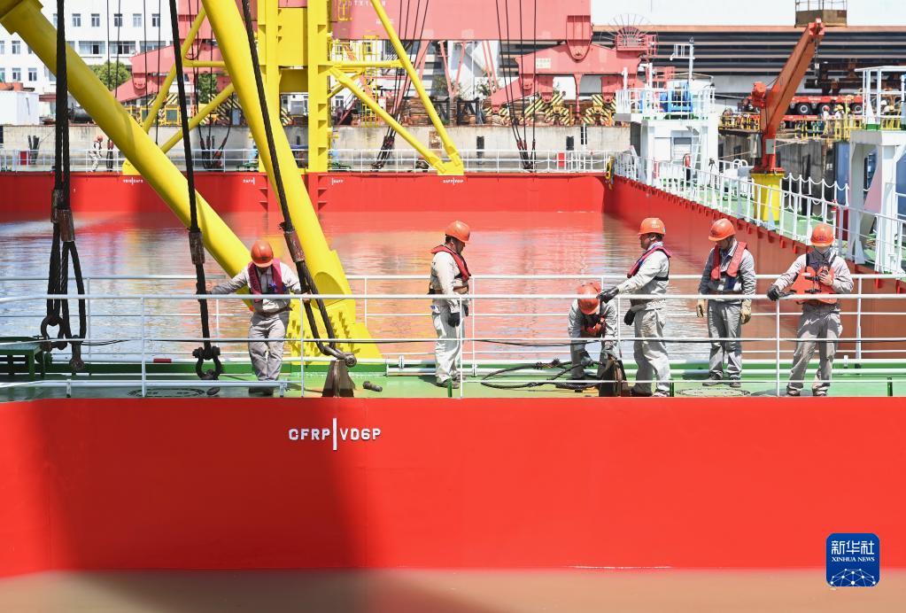當日,“乾動2號”深遠海養殖平臺下水儀式在位于福建福州市連江縣粗蘆島的馬尾造船股份有限公司舉行。