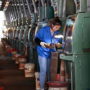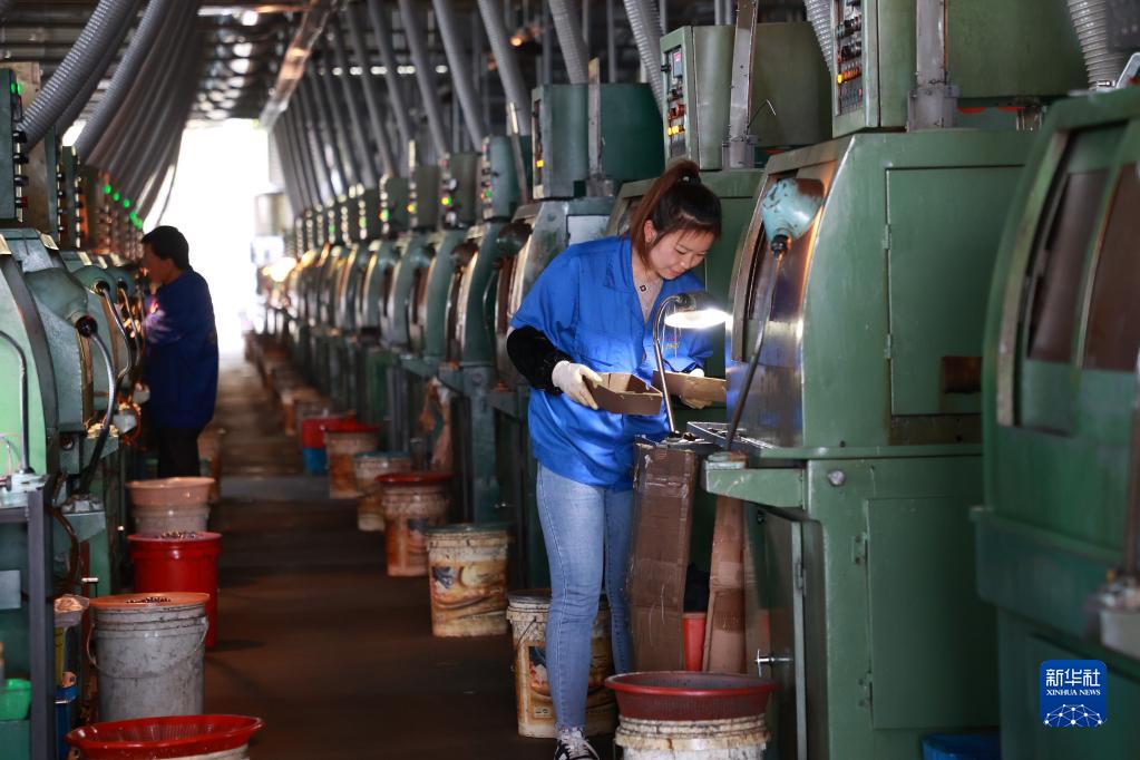 4月10日,搬遷群眾在獨山縣望城社區安置點附近的軸承產業園區內生產軸承。