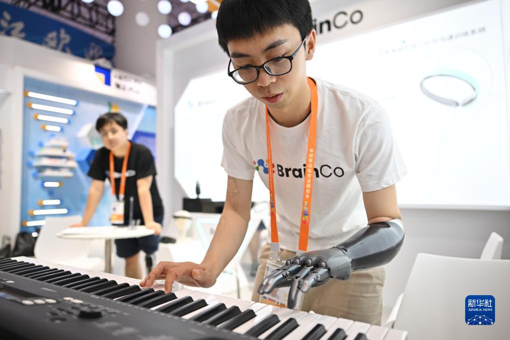 4月10日,參展商在消博會浙江展臺展示一款智能仿生手。
