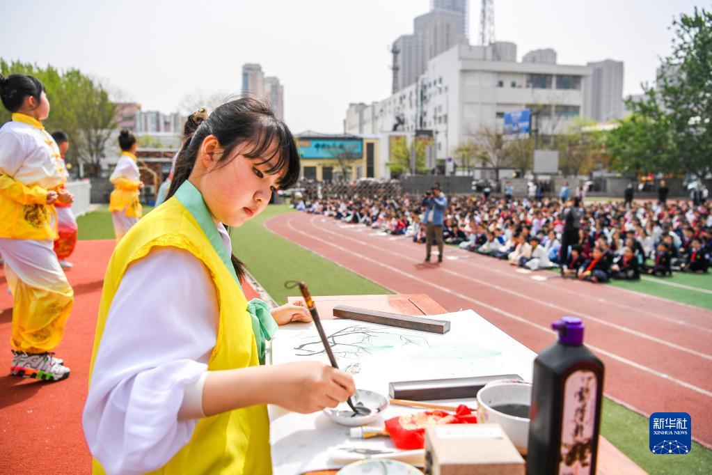 當日,以“徜徉詩詞之海,品味文韻之美”為主題的傳統文化節在天津小學舉行。學生們在老師的指導下參與國學朗誦、京劇選段表演、書畫展示等活動,感受傳統文化的魅力。