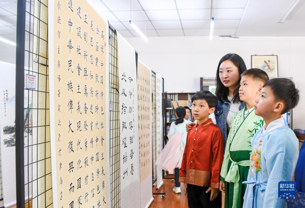 當日,以“徜徉詩詞之海,品味文韻之美”為主題的傳統文化節在天津小學舉行。學生們在老師的指導下參與國學朗誦、京劇選段表演、書畫展示等活動,感受傳統文化的魅力。