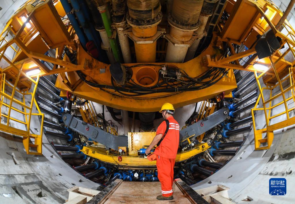 深(深圳)江(江門)鐵路橫穿珠江的珠江口隧道由兩臺直徑超13米的巨型盾構機從東莞虎門和廣州南沙兩端分別盾構掘進,目前隧道盾構段已掘進過半,珠江口隧道全長13.69公里,海底最大埋深達115米。