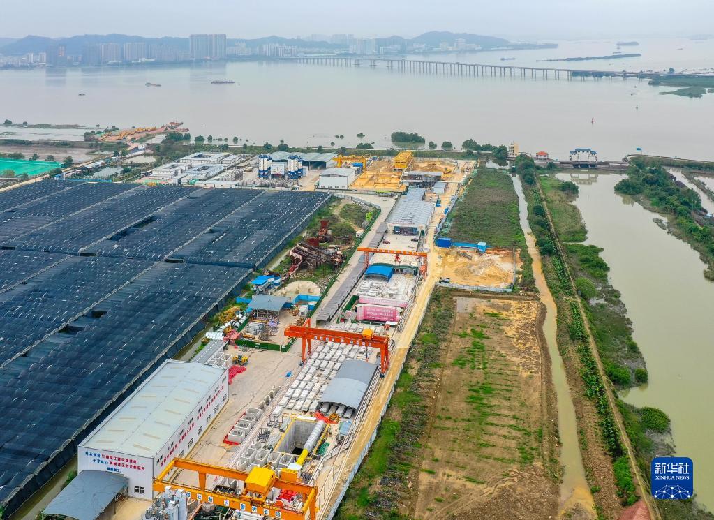 這是深江鐵路珠江口隧道廣州南沙段盾構起始點(4月10攝,無人機照片)。
