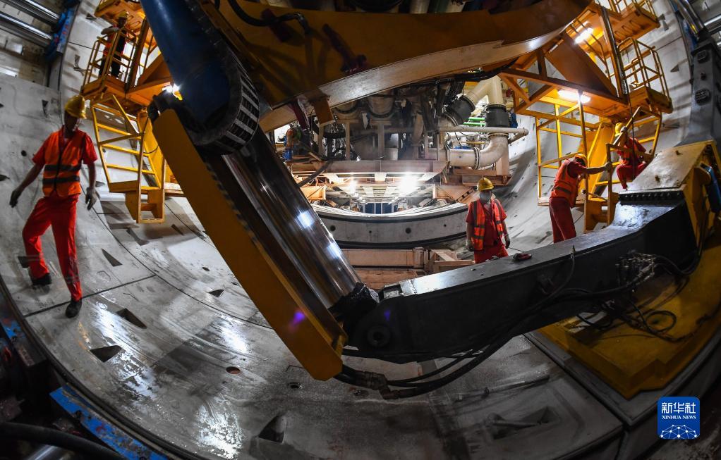 深(深圳)江(江門)鐵路橫穿珠江的珠江口隧道由兩臺直徑超13米的巨型盾構機從東莞虎門和廣州南沙兩端分別盾構掘進,目前隧道盾構段已掘進過半,珠江口隧道全長13.69公里,海底最大埋深達115米。