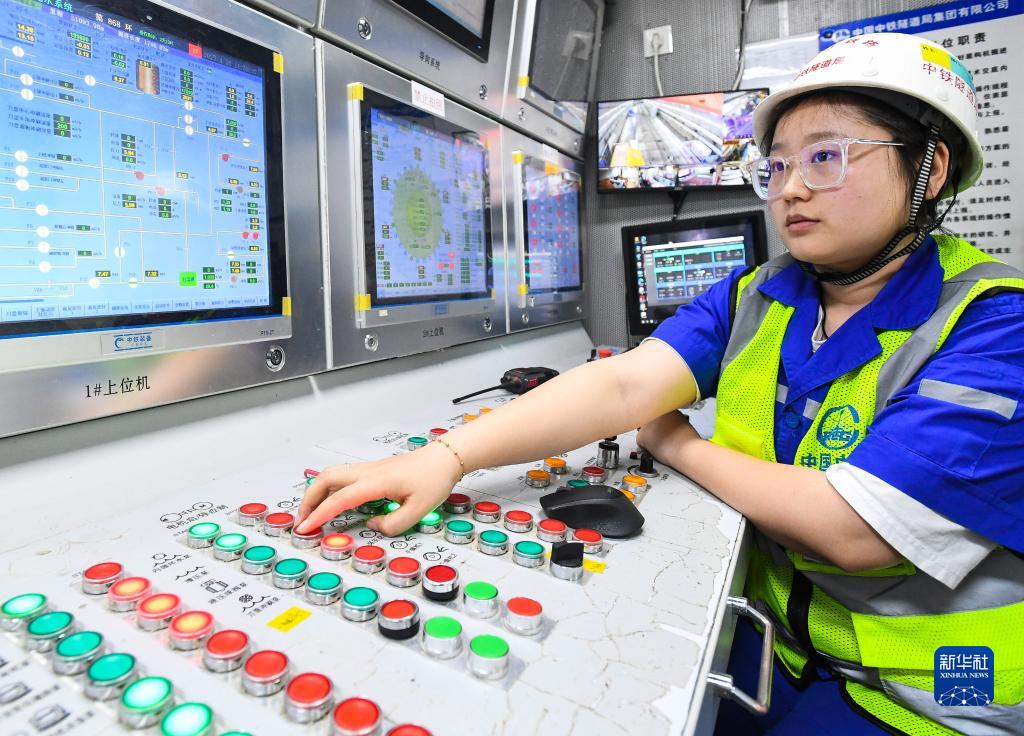 在深江鐵路珠江口隧道廣州南沙段,中鐵隧道局“大灣區號”盾構機主司機楊涔在操控室工作(4月10日攝)。