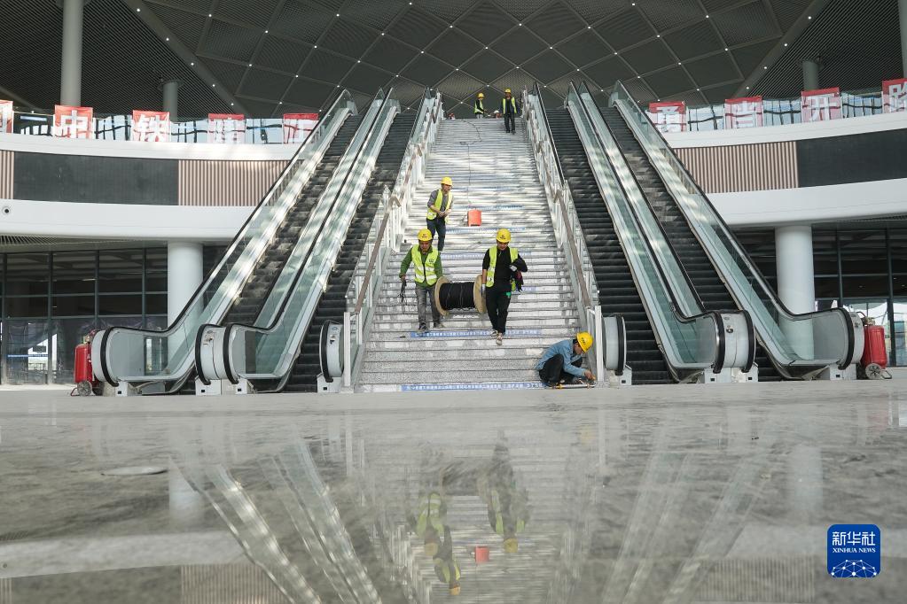 近日,由中鐵建工集團承建的滬寧沿江高速鐵路江陰站站房裝飾裝修作業進入收尾階段。