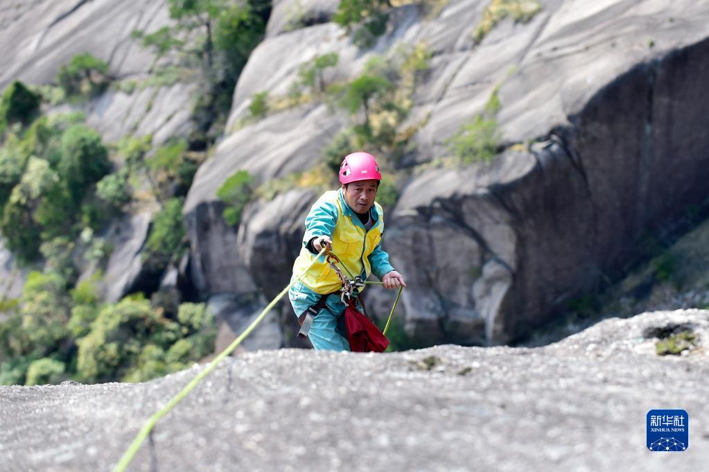 在安徽黃山風景區,有這樣一群特殊的環衛工,他們常年攀爬在懸崖峭壁間清理垃圾。玉屏環衛所的李培生是他們中的一員,20多年來,李培生累計放繩長度達1800公里,除了巡查并清理垃圾,還經常幫助游客撿拾掉下懸崖的物品,2012年被評為“中國好人”。黃山風景區一共有18名像李培生這樣的放繩工,他們用辛勤的汗水守護著黃山的美麗。