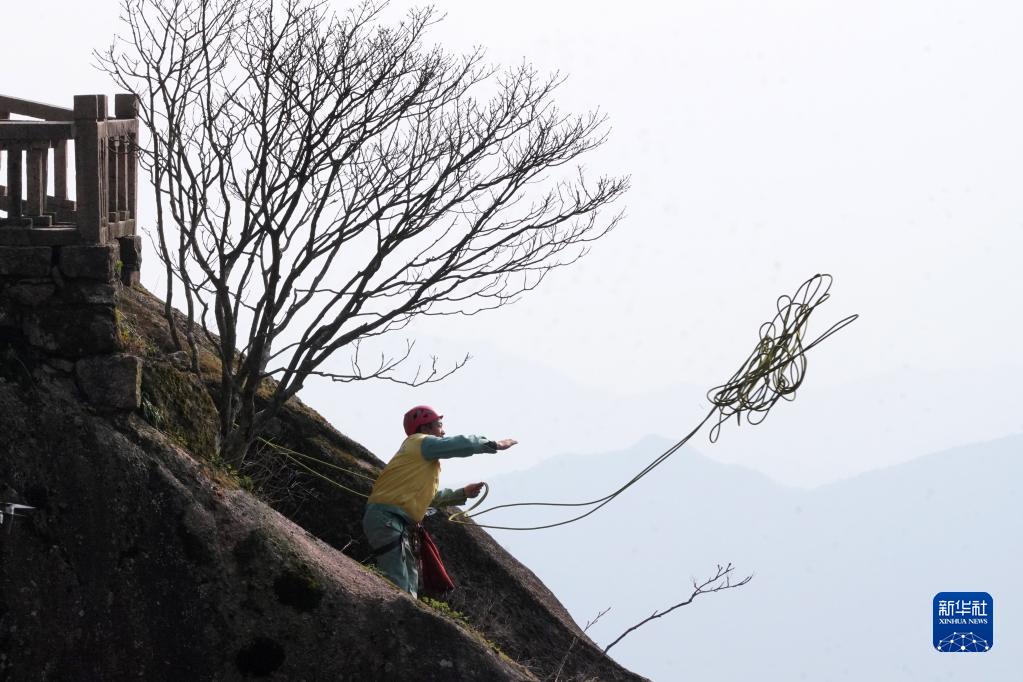 在安徽黃山風景區,有這樣一群特殊的環衛工,他們常年攀爬在懸崖峭壁間清理垃圾。玉屏環衛所的李培生是他們中的一員,20多年來,李培生累計放繩長度達1800公里,除了巡查并清理垃圾,還經常幫助游客撿拾掉下懸崖的物品,2012年被評為“中國好人”。黃山風景區一共有18名像李培生這樣的放繩工,他們用辛勤的汗水守護著黃山的美麗。