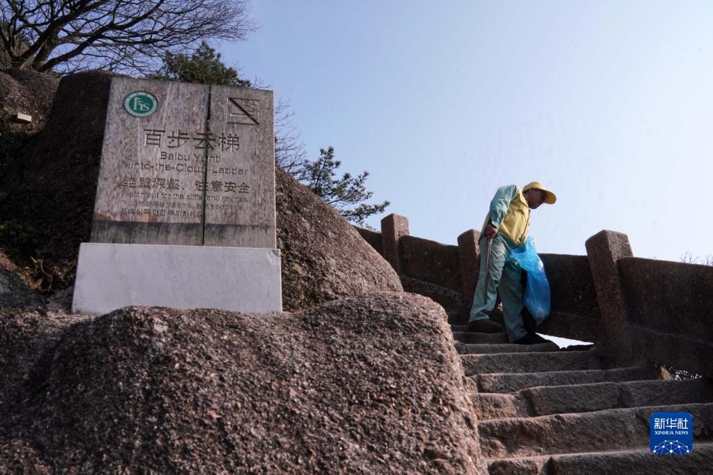 在安徽黃山風景區,有這樣一群特殊的環衛工,他們常年攀爬在懸崖峭壁間清理垃圾。玉屏環衛所的李培生是他們中的一員,20多年來,李培生累計放繩長度達1800公里,除了巡查并清理垃圾,還經常幫助游客撿拾掉下懸崖的物品,2012年被評為“中國好人”。黃山風景區一共有18名像李培生這樣的放繩工,他們用辛勤的汗水守護著黃山的美麗。