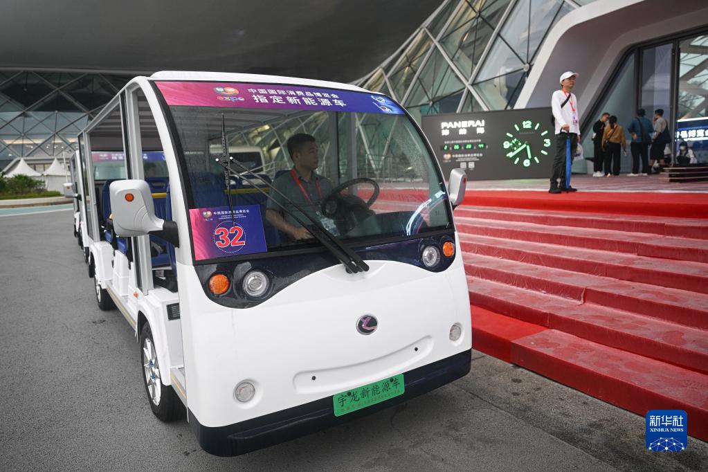 在消博會場館外拍攝的新能源擺渡車(4月8日攝)。