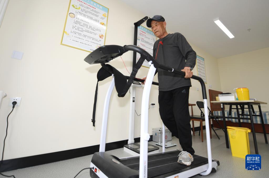 老年人在河北雄安新區容西第一養老驛站進行鍛煉(4月10日攝)。