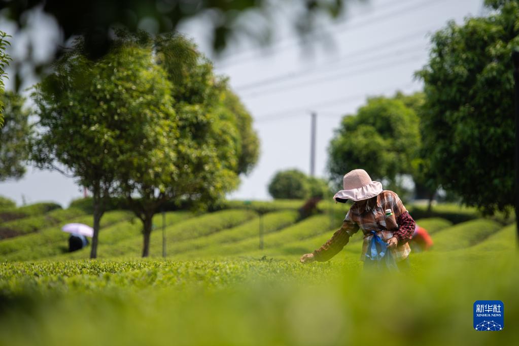 4月11日,在長沙望城烏山貢茶基地,茶農在采摘春茶。