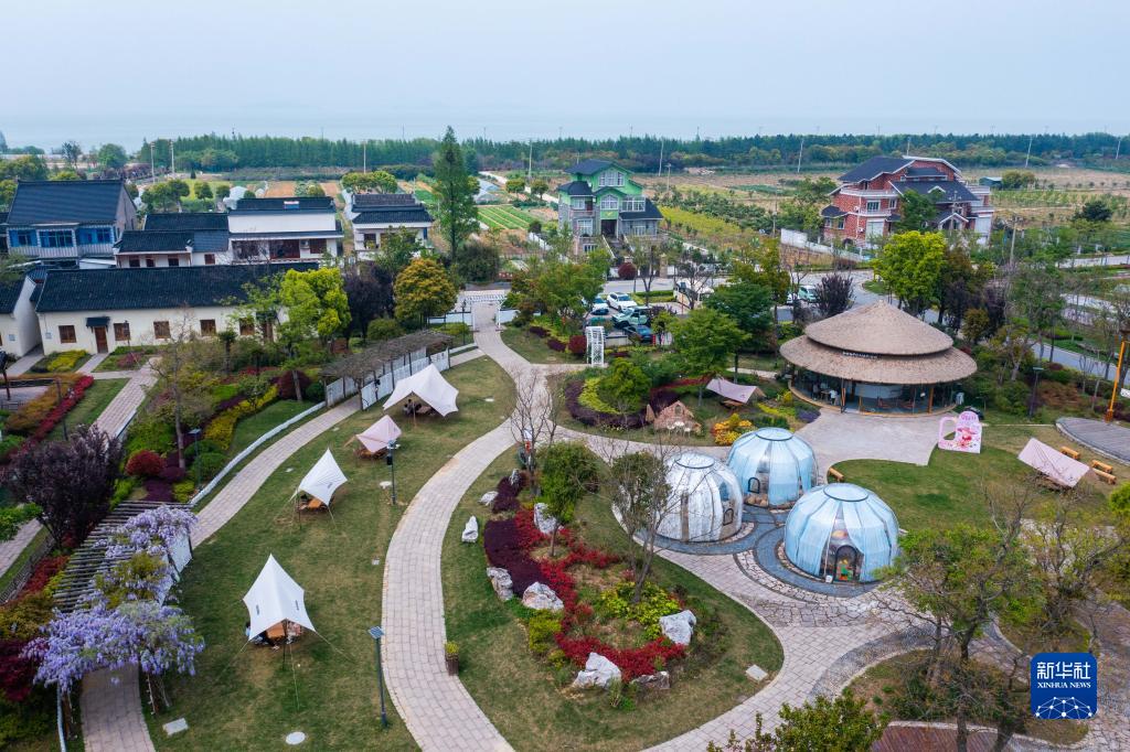 4月11日拍攝的伍浦村漁耕文化園的陶灣里鄉村咖啡店以及鄉村露營地(無人機照片)。